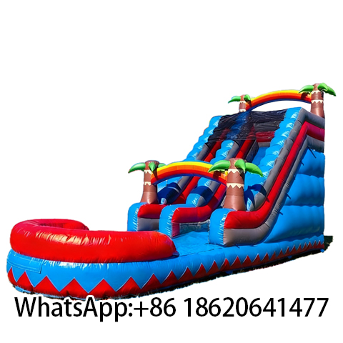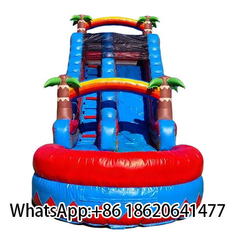 Large Trampoline Palm Tree Bounce Castles Inflatable Water Slide With Pool For Kids