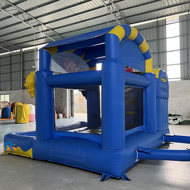 This Baby Shark-themed inflatable combo isn’t just a castle—it’s a underwater adventure hub! Kids bounce like little sharks in the spacious jumping area, then zip down the bright blue-and-yellow slide straight into the shallow pool (perfect for cooling off on sunny days).