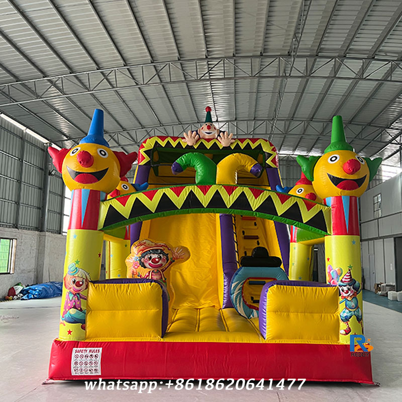 clown-themed inflatable slide bounce house with slide dry slide