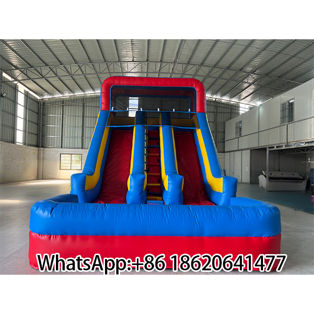 Vibrant Red - Blue - Yellow Dual - Lane Inflatable Water Slide: Splash Fun Unleashed