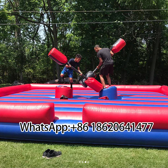 Outdoor Inflatable Combat Zone: Pillar - Based Dueling Fun with Padded Weapons