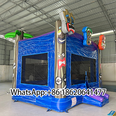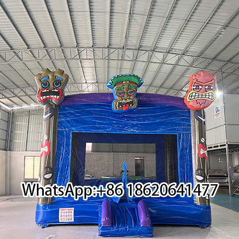 Inflatable Bounce Structure with Elaborate Tiki - Style Totem Head Ornaments