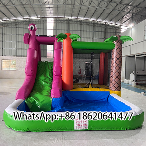 Inflatable Combo with Slide, Pool and Tropical - themed Decor