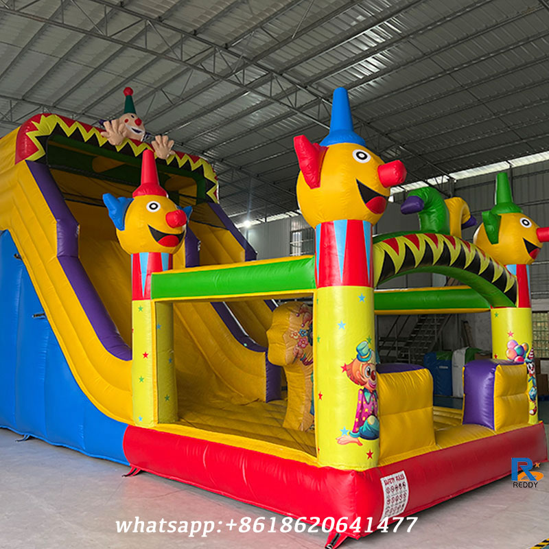 clown-themed inflatable slide bounce house with slide dry slide